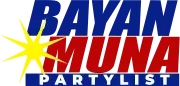 Bayan Muna (literally, "Nation First") is a party-list in the Philippines, a member of the leftist political party Makabayan. The motto of the party is "New Politics, the Politics of Change", against "traditional, elitist, pro-imperialist politics".[1] Its platform includes the advocation of a government that progressively supports the working class, with meaningful representation of all democratic sectors in the Philippines. Bayan Muna was the second most popular party-list party in the 2007 Philippine elections. In 2009, Bayan Muna Representative Satur Ocampo and former Bayan Muna and incumbent Gabriela Representative Liza Maza ran for senate seats as guest candidates under the ticket of billionaire real estate magnate Senator Manny Villar. Ocampo said that their common objective “is to emancipate the people from widespread poverty and social injustice."[2]