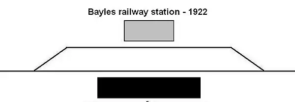 Upon opening of the line in 1922 Bayles station was supplied with sheep yards, goods loading and storage facilities, departmental residence and passenger facilities. Even though Bayles was the terminus of the line for 9 years it was never fitted with a turntable, which required trains to run tender first Down the line.
