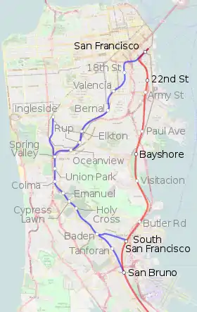 | Termini | San Francisco San Bruno | |||||||||||||||||||||||||||||||||||||||||||||||||||||||||||||||||||||||||||||||||||||||||||||||||||||||||||||||||||||||||||||||||||||||||||||||||||||||||||||||||||||||||||||||||||||