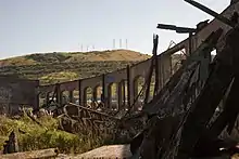 The Bayshore Roundhouse was completed in 1910 and still stands, although it was damaged in an October 2001 fire which destroyed approximately half the roof.[58] Construction on the Roundhouse started in 1908, shortly after the Bayshore Cutoff was completed, and it was one of the first buildings at the new Bayshore railyard.[25]