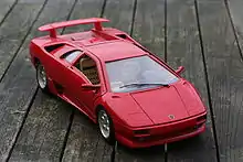BBurago did not, however, stick strictly to 1/18, with smaller cars like the Renault Alpine A110 and the Fiat 500 presented in 1/16 and larger vehicles like the Ford F-150 pickup in 1/21. 1/24 was also a regular size. The Ford pickup, however, is an exception as European marques were a main focus of the Italian company. At first, offerings consisted mostly of 1930s cars, but later, more 1950s and 1960s models were introduced, like the Jaguar XK-E roadster. Finally, many contemporary high performance automobiles, like the Lamborghini Diablo, appeared and some of these were the company's most popular sellers.