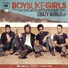 Crazy World is the third studio album by American pop rock band Boys Like Girls. It marks a departure from the group's original emo and alternative rock sound in favor of a more country style. The Crazy World EP was released on July 17, 2012 with the tracks, "Be Your Everything", "Life of the Party" and "The First Time" to help promote the album. The album was released on December 11, 2012.[1] On November 15, they posted a "Crazy World Song Reveal" page, allowing fans to share a link to it in order to unlock a new song off the new record.[2] On November 16, the new track was revealed as "Stuck in the Middle", and the LP was made available for pre-order.