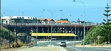 (from east) Beach Street under Fremantle Traffic Bridge, then up between the Traffic and Railway Bridge approaches