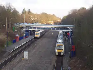 The station was opened on 2 April 1906 as part of the Great Western and Great Central Joint Railway. The station layout was four tracks, with two through lines and two platform lines.[1] British Rail removed the through lines early in 1974.[2] As part of Chiltern Railways' Project Evergreen 2 the platform lines were upgraded to increase the line speed for through trains from 40 mph (64 km/h) to 75 mph (121 km/h).[3]