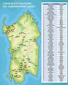 Beaker finds have been found at about seventy sites in Sardinia; they are concentrated mostly along the western coast of the island, from the Nurra region to Sulcis-Iglesiente, and in Campidano, with some settlement in the east, in Dorgali and in the Sarrabus.[5]