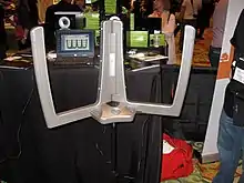 The Beamz is a laser-based music device. It is a W-shaped table-top optical control device with several laser beams. Users operate the device by using their hands to interrupt the beams.[1]