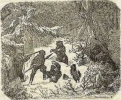 In the Slavic countries it was known as a rogatina and used since at least the 12th century. Ruthenian (Kievan Rus') chronicles first mention its use as a military weapon in 1149, and as a hunting weapon in 1255, though it was used by Prince Daniel of Galicia in boar hunting.[2] In Germany, the bear spear or Bärenspieß was known from at least the Late Middle Ages but was rather rare when compared to Eastern Europe due to the much smaller bear population.