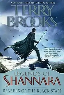 Bearers of the Black Staff is a fantasy novel by American writer Terry Brooks, released on August 24, 2010, as the first of a two-part series called the Legends of Shannara. In the series' timeline, it falls between the Genesis of Shannara trilogy and the First King of Shannara.[1][2] It takes place 500 years after the events of the final Genesis book, The Gypsy Morph.[3] The people who were saved by Hawk's magic are able to head out into the World once again, since the effects of nuclear holocaust have dissipated.[4]