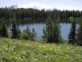 Bearpaw Lake is located in Grand Teton National Park, in the U. S. state of Wyoming.[2] Bearpaw Lake is south of Trapper Lake and north of Leigh Lake. Bearpaw Lake is an easy to moderate 8-mile (13 km) round trip hike along the Leigh Lake Trail.[3]