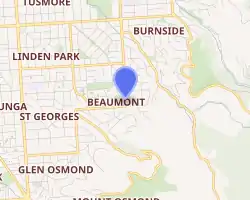 The suburb of Beaumont, in the City of Burnside, was founded as a purpose-built village by Sir Samuel Davenport in 1848. The location of Beaumont to Adelaide, a rapidly developing settlement at the time, made land in the area extremely expensive. Although Adelaide as a new settlement was prospering during the mid-19th century, still very few people could afford the exclusivity of Beaumont.[2]