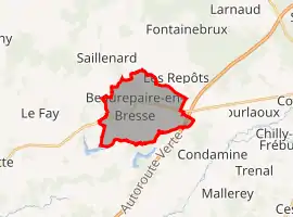 Beaurepaire-en-Bresse (French pronunciation: [boʁpɛʁ ɑ̃ bʁɛs], literally Beaurepaire in Bresse) is a commune in the Saône-et-Loire department in the region of Bourgogne-Franche-Comté in eastern France.[3]