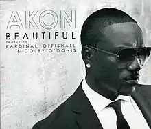 "Beautiful" is the third single from Akon's third studio album, Freedom. The song features American pop singer Colby O'Donis and a rap verse from Canadian rapper Kardinal Offishall. "Beautiful" was released to radio on January 6, 2009. The song has also been released in other three international versions, with different featured artists replacing both Colby's vocals and Kardinal's rapping: in Portuguese with Brazilian singer Negra Li, in Dutch with Dutch singer Brace, and in Spanish with Mexican singer Dulce María. The original version peaked at number nineteen on the Billboard Hot 100. Outside of the United States, the original version peaked within the top ten of the charts in Israel and the United Kingdom.