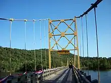 The Beaver Bridge in Beaver, Arkansas, is a historic one-lane suspension bridge carrying Arkansas Highway 187 over the White River at Table Rock Lake. Built in 1949 by the Pioneer Construction Company, the structure is the only suspension bridge open to traffic in Arkansas. The Beaver Bridge was added to the National Register of Historic Places in 1990.[2]