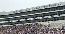Beaver Stadium is an outdoor college football stadium in the eastern United States, located on the campus of Pennsylvania State University in University Park, Pennsylvania. It has been home to the Penn State Nittany Lions of the Big Ten Conference since 1960, though some parts of the stadium date back to 1909. It was also the site of university commencements until 1984.[4] The stadium, as well as its predecessors, is named after James A. Beaver (1837–1914), a governor of Pennsylvania (1887–91), president of the university's board of trustees,[5] and native of nearby Millerstown.