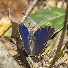 Bebearia carshena, the shining blue forester, is a butterfly in the family Nymphalidae. It is found in Sierra Leone, Liberia, Ivory Coast, Ghana, Nigeria, Cameroon, Gabon, the Republic of the Congo, the Central African Republic, the Democratic Republic of the Congo (Ubangi, Uele, north Kivu, Tshopo, Equateur and Lualaba), western Uganda and north-western Tanzania.[2] The habitat consists of dense forests.