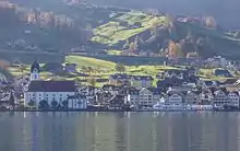 The Beckenried–Gersau car ferry links a terminal in Niederdorf with Gersau on the opposite bank of Lake Lucerne.
