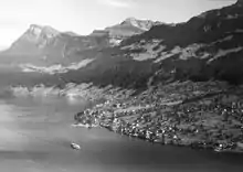 The first settlers in what would become Beckried were from Alamanni tribes that moved into the area over 2000 years ago.[3] During the Middle Ages the region was part of extensive estates that were shared between Engelberg Abbey, Murbach-Lucerne and Steinen, Switzerland. The two tower houses in the village (named: Retschrieden and Isenringen) were built in the 13th century for two local, influential families. In 1262 the village is mentioned in an agreement over a nearby pasture.[3] In 1314 it is mentioned as Beggenriet.[4]