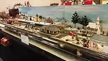 The Bedford Museum is home to an annual O Gauge train layout on its third floor. Children are entertained as the train goes past villages and across a trestle and through a tunnel. They can also run a trolley that goes back and forth in the village. During the two weeks of Christmas Break, the Polar Express runs on the track as well. There are other interactive train possibilities as well, depending on the year.[2][3]