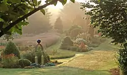 Scattered throughout the 20 developed acres (8.1 ha) are small and large pieces of sculpture by Jill Nooney, one of the co-founders. Nancy Grimes, the previous owner of New England Garden Ornaments in North Brookfield, called Nooney "the most imaginative and energetic force in modern American garden ornamentation."[7] Many of her sculptures are from old agricultural tools.[8]