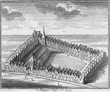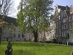 ![]() The Begijnhof with the English Reformed Church, Amsterdam on the left and the Begijnhof Chapel on the right. | |