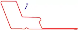 As a result of safety issues and difficulties experienced during the first practice session for the inaugural race at the circuit—the A1GP cars found it difficult to negotiate the tight 180-degree Turn 8 hairpin—the circuit was revised overnight prior to practice on November 11, 2006. The straight leading up to Turn 8 was shortened and the turn was made less tight. The shorter circuit (down from 1.894 miles to only 1.386 miles) was created and creating another less tight hairpin halfway up the straight, bypassing most of the old straight.[2] However, this corner was still not ideal as drivers ran wide despite the corner being wider, and had to avoid the pitlane entry barrier.