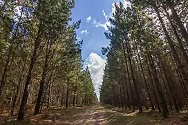 Belanglo State Forest is a planted forest, of mainly pine but some native forestry around the edges, in the Australian state of New South Wales; its total area is about 3,800 hectares.[2] The Belanglo State Forest is located south of Berrima in the Southern Highlands, three kilometres west of the Hume Highway between Sydney and Canberra. The forest is owned by the New South Wales Government and contains some of the earliest pine plantings in the state. The first radiata pines were planted in this area in 1919.[3] The public has free access to the forest; it features two to four wheel drive tracks, creek crossings, and forest camping. It is popular among recreational trail bike riders.