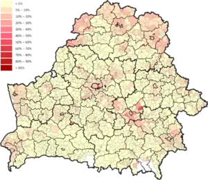 ![]() Distribution of Belarusians by 3rd level administrative units |