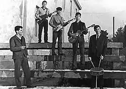 The band was formed in Čačak in the autumn of 1962 by Aleksandar Slaviković "Gušter" (guitar), Ljubodrag Jovanović "Borovac" (bass guitar), Zoran Sokić "Sole"(keyboards), Mišo Ilić (rhythm guitar), Dragan Maksimović (drums), Slobodan Pajić "Pajo" (vocals) and Muhamed Hukić "Hujo" (vocals).[1][2] At the second half of 1963, Ilić was replaced by Stevo Radović (rhythm guitar, vocals), Maksimović was replaced by Predrag Radonjić, and Sokić switched from keyboards to bass guitar.[2] This would become the band's most successful lineup.[1] Prior to the arrival of Radović the band performed covers only, and after he joined the band, they started working on their own songs.[1]
