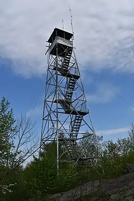 The first structure built on the mountain was a wooden tower that was constructed by the Conservation Commission in 1912. In 1917, the Commission replaced it with a 47-foot-tall (14 m) Aermotor LS40 tower. The tower was taken out of service in 1988. The tower was officially closed in early 1989 by the Department of Environmental Conservation.[2]