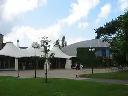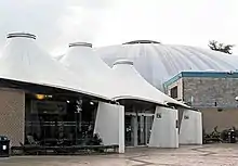 The Gannochy Sports Pavilion was built on the dome's southeastern side between 1975 and 1979, designed by Esmé Gordon.[1] The two buildings were linked and modernised between 1989 and 1991, with squash courts added.[1][7]