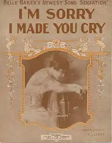 Belle Baker (December 25, 1893[1] in New York City – April 29, 1957 in Los Angeles) was an American singer and actress. Popular throughout the 1910s and 1920s, Baker introduced a number of ragtime and torch songs including Irving Berlin's "Blue Skies" and "My Yiddishe Mama". She performed in the Ziegfeld Follies and introduced a number of Irving Berlin's songs. An early adapter to radio, Baker hosted her own radio show during the 1930s. Eddie Cantor called her “Dinah Shore, Patti Page, Peggy Lee, Judy Garland all rolled into one.”[2]