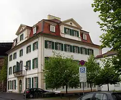Bellevue Palace is near the center of Kassel, west of the Fulde River.[1] It is next to the Neue Galerie, an art museum founded in 1976 in an 1874 neo-classical building.[2] Bellevue Palace was erected in 1714 by the French architect and Huguenot refugee Paul du Ry as an observatory for Charles I (1654–1730), Landgrave of Hesse-Kassel.[3]