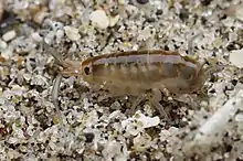 Bellorchestia quoyana (formerly Talorchestia quoyana)[1] is the largest and most common species[2] of sandhopper, endemic to New Zealand. Its length is up to 14 millimetres (0.55 in). They help to keep the beaches clean by breaking down any organic material, which is vital for plant succession. They are nocturnal and bury themselves up to 30 centimetres (12 in) during the day (the drier the sand, the deeper they go).[3]