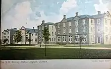 During the building of the asylum, there were issues that delayed the asylum opening mainly due to problems with the water and gas on the site.[1] William Stirling III never saw his work completed as he died in February 1869, James Brown completed the building of the asylum and it was opened as the Stirling District Lunatic Asylum in June 1869.[5] The asylum consisted of two large buildings that consisted of a chapel, male and female dormitories and a dining-room.[1] The asylum was meant to house two hundred and fifty inmates, but issues with overcrowding meant that there were several additions to the original buildings.[1] The inmates came from the counties of Clackmannan, Dumbarton, Stirlingshire and Linlithgow.[1] The first superintendent of the asylum was Dr Frederick Skae of Morningside.[1]
