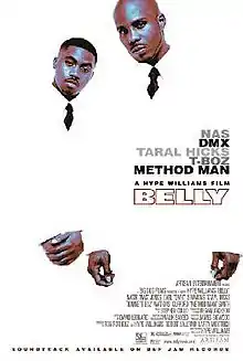 Belly is a 1998 American crime drama film written and directed by music video director Hype Williams, in his feature film directing debut.[2] Filmed in New York City, the film stars rappers Nas and DMX in their film debut, alongside Taral Hicks, Method Man, and R&B singer T-Boz.
