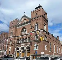 Among the neighborhood's array of Italian restaurants and markets, there are multiple landmarks. Our Lady of Mount Carmel, a Roman Catholic church on E. 187th Street at the corner of Belmont Avenue, was constructed in 1906.[25] The Arthur Avenue Retail Market, which extends the block between Arthur Avenue and Belmont Avenue, features an array of Italian meats, cheeses, and other goods, as well as cigars, a bar, and a dining area.
