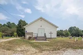 In 1907 Hoosier Group artist T. C. Steele and his wife, Selma Neubacher Steele, moved into newly built studio and home on 60 acres (24 hectares) of hilltop land one and a half miles south of Belmont. They named their summer retreat the House of the Singing Winds; it became their year-round residence in 1912.[5][6] After purchasing additional acreage in 1911 to increase their Brown County property to 211 acres (85 hectares) of land, they made further improvements that included an enlarged home surrounded by expansive gardens, a large studio-gallery, and several other outbuildings.[7] In July 1945 Selma donated the entire property and more than 300 of her husband's paintings to the Indiana Department of Conservation (the present-day Indiana Department of Natural Resources) to preserve it as the T. C. Steele State Historic Site. It was listed on the National Register of Historic Places in 1973. The T. C. Steele Memorial Cemetery, which is also in the state historic site near Belmont, includes the graves of T. C. and Selma Steele.[8]