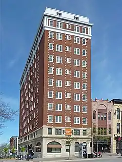The Belmont Hotel is a twelve-story residential hi-rise built as a hotel on the capitol square in Madison, Wisconsin in 1924. At that time it was the tallest building near the capitol and concern that it blocked the view prompted height-limit restrictions that are still in place. In 1990 the building was placed on the National Register of Historic Places.[2]