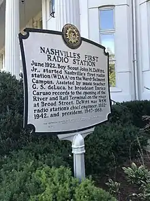 The first radio station in Nashville went on air in May 1922 when, Boy Scout[18] John "Jack" DeWitt, Jr., a 16-year-old high school student, installed a twenty-watt transmitter at Belmont. The station, WDAA, was born when Doctor C. E. Crosland, Associate President, realized the potential advertising value to the college of a radio station. The WDAA program on April 18, 1922, marked the first time a music program was broadcast in Nashville. The broadcast could be heard 150 to 200 miles (320 km) from the school.[19] DeWitt later became WSM (AM) radio station's chief engineer, 1932–1942, and president, 1947–1968.[20]