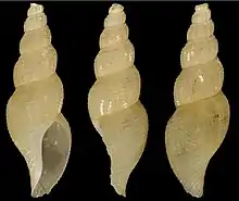 (Original description) The small, delicate shell is white with a pale yellowish periostracum. It contains at least six whorls beside the (lost) protoconch. The spire is acute, slender and is longer than the aperture. The suture is deep and appressed. The whorls are gently rounded. The apical whorls show (on the third whorl about fifteen) very narrow, sharp, threadlike, vertical ribs with much wider interspaces, and at the suture numerous, irregular, small, retractive folds extending over the fasciole, with wider interspaces, nearly twice as many as there are ribs. On the succeeding whorls these ribs and folds grow sparser and weaker, so that on the sixth whorl ribs, folds and fasciole are obsolete or absent.