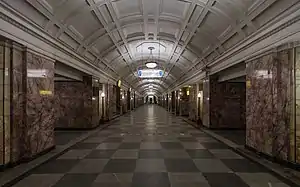 Belorusskaya (Russian: Белору́сская) is a Moscow Metro station on the Zamoskvoretskaya line. Designed by architects Ivan Taranov and Nadezhda Bykova, it was opened in 1938 as part of the second stage of the Moscow Metro.