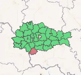 Belovsky District (Russian: Бело́вский райо́н) is an administrative[1] and municipal[5] district (raion), one of the twenty-eight in Kursk Oblast, Russia. It is located in the south of the oblast. The area of the district is 950 square kilometers (370 sq mi).[2] Its administrative center is the rural locality (a sloboda) of Belaya.[1] Population: 17,933 (2010 Census);[3] 22,182 (2002 Census);[7] 25,968 (1989 Census).[8] The population of Belaya accounts for 14.5% of the district's total population.[3]