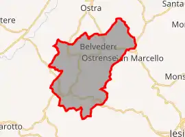 Belvedere Ostrense borders the following municipalities: Castelplanio, Maiolati Spontini, Montecarotto, Morro d'Alba, Ostra, Poggio San Marcello, San Marcello, Senigallia.