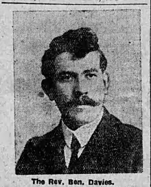 Ben Davies (1840 - 1930) was a Welsh Independent minister and author. He grew up in the Rhondda area, where an early age he entered employment as a coal miner, but managed to educate himself to some extent, and joined Cymer Church, where he was encouraged to begin preaching. He later held positions at the Tabernacle at Treorchy, Trelech and Capel Iwan, and Ebenezer, Newcastle Emlyn.