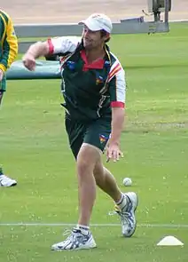 After losing the home Test series against South Africa in December 2008, Australia embarked on a tour of South Africa in February 2009 needing to avoid losing the series to retain the top spot in the ICC's Test rankings.[15][16] Hilfenhaus debuted in the first Test, one of three frontline fast bowlers alongside Mitchell Johnson and Peter Siddle. Between them they had experience of 22 Tests compared to the 144 South Africa's quicks had played in.[17] Australia won the series 2–1 and Hilfenhaus played in all three matches, taking 7 wickets while conceding 366 runs.[18][19]