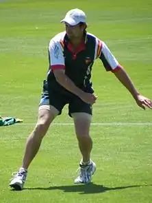 The 19-year-old Hilfenhaus was one of 25 young players given scholarships to go to the Commonwealth Bank Cricket Academy in May 2002,[3] and later that year he was given a rookie contract with Tasmania for the 2002/03 season.[4] In 2003 Hilfenhaus was again included in the 25-man intake to the CB Cricket Academy.[5] It was not until 17 October 2005 that he made his senior debut aged 22, playing for Tasmania in the Pura Cup, Australia's first-class competition. The match ended in a draw and Hilfenhaus took a single wicket, that of Mitchell Johnson bowled, while conceding 126 runs.[6] For the 2005/06 season Hilfenhaus still had a rookie contract and also worked as a bricklayer. That season he claimed 39 wickets in the Pura Cup at an average of 30.82, breaking the record set by West Indian Michael Holding for most first-class wickets in their first season for Tasmania. Hilfenhaus was rewarded with a full contract with Tasmania for the first time and he was given a place in the Australia "A" squad for the winter Top End series.[7][8] He had previously represented Australia at under-19 level.