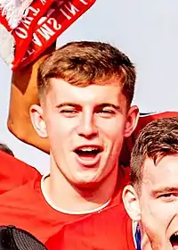 Woodburn has played for Wales up to U19 level and was first called up to train at one of the nation's regional development centres at Dragon Park when he was 13.[61] He played for Wales U15s in two games against Poland in March 2014, scored a hat-trick for the U16 side against Northern Ireland the following year and then captained the U17 team against Greece in 2016.[10][57][62] Later that year, he represented the U19 side in their UEFA European Under-19 Championship qualification matches and scored a brace in a 6–2 win over Luxembourg.[63]