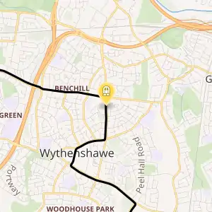 Benchill is a tram stop for Phase 3b of the Manchester Metrolink. It opened on 3 November 2014.[1] It is on the Airport Line at the Brownley Road/Hollyhedge Road crossroads.[2] A health centre and new sixth form college are also near the stop.