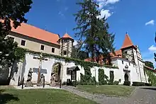 The town is known for its castle complex, made up of seven buildings in the Saxon Renaissance style. It contains two castles (called Dolní and Horní – "Upper" and "Lower"), Church of the Nativity of the Virgin Mary, Chapel of the Sorrowful Mother of God, and three houses. The complex was built by the Salhausen noble family in the 16th century.[3]
