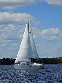 The Beneteau 361 is a small recreational keelboat, built predominantly of fiberglass. It has a masthead sloop rig, a raked stem, a walk-through reverse transom an internally-mounted spade-type rudder controlled by a wheel and a fixed fin bulb keel. It displaces 13,349 lb (6,055 kg) and carries 4,156 lb (1,885 kg) of ballast.[1][3]